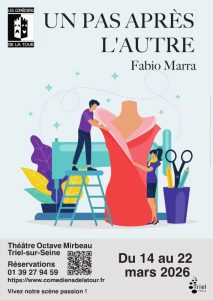 En mars, nous vous emmenons en Italie dans le quotidien de l’atelier de haute couture des sœurs Mazzella. Vous y découvrirez les deux sœurs : Daniela et Arianna, Matteo le fils de cette dernière et Lisa, la jeune styliste… On vous attend du 14 au 22 mars (relâche les 17 et 18 mars) pour Un pas après l’autre de Fabio Marra. Ne tardez pas à réserver notamment pour les dimanches qui sont déjà très sollicités.