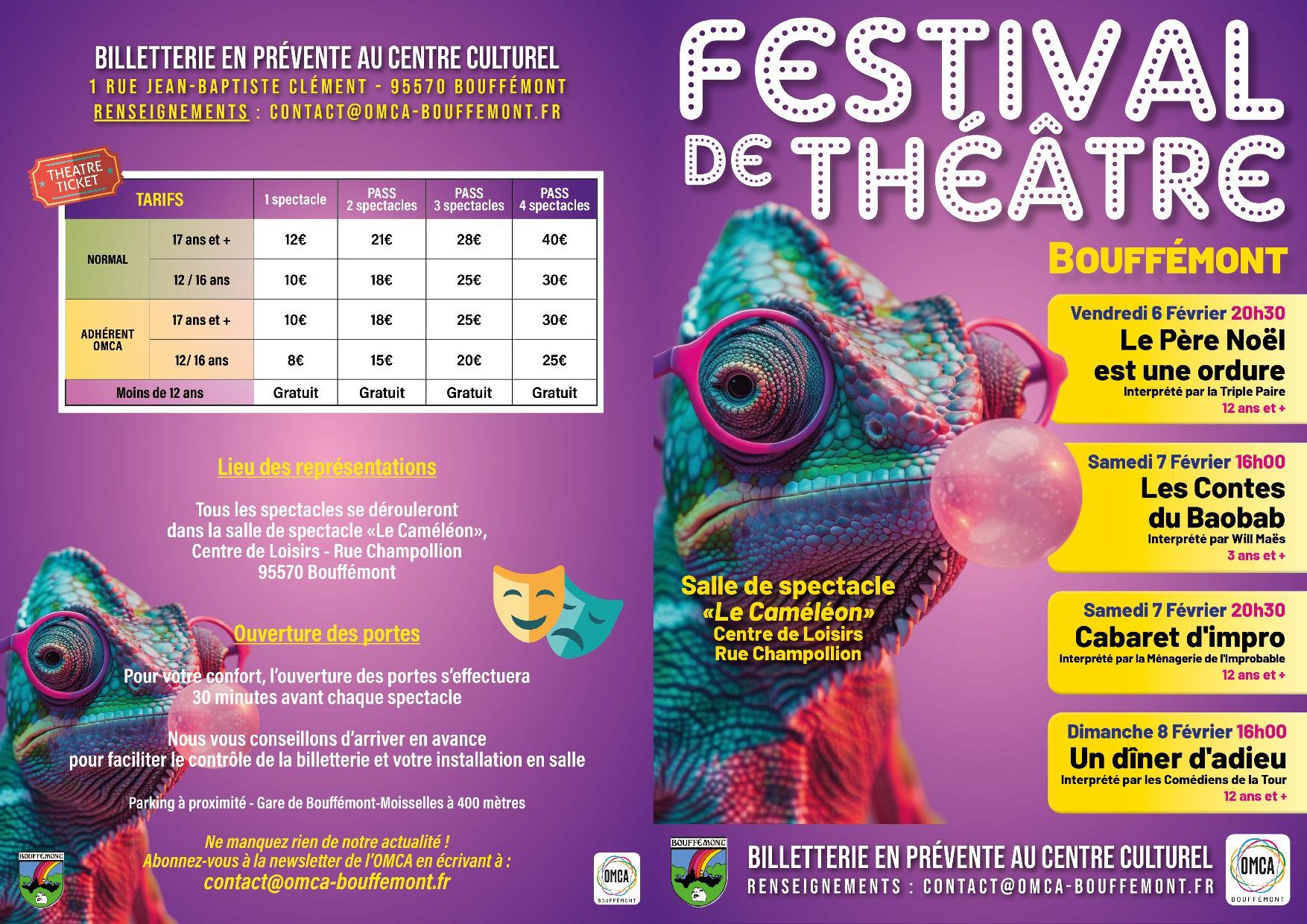Ce sera dans le cadre du 1er festival de Bouffémont(95), salle le Caméléon au centre de Loisirs, rue Champollion.