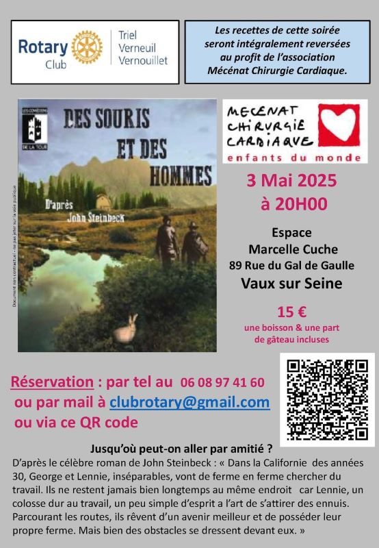 Cette représentation est organisée par le Rotary Triel Verneuil Vernouillet et les fonds récoltés iront à l’association Mécénat Chirurgie Cardiaque.