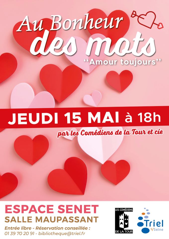 En partenariat avec la bibliothèque de Triel-sur-Seine, nous vous proposons Au bonheur des mots. Ces soirées sont l’occasion de découvrir ou de redécouvrir des textes en lien avec l’actualité ou les événements nationaux consacrés à la lecture.
